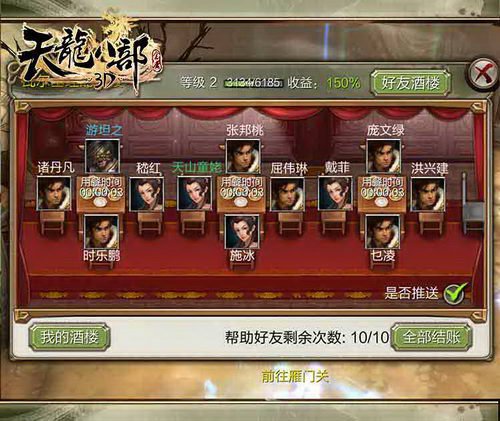 1.酒樓收益分為銅幣,經歷,增幅丹藥和戒指護符,酒樓能夠經過上菜結算,去好友的酒樓結算進步等級去取得更多的收益。
