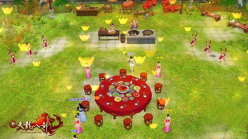 约请三五老友,在家中吃一顿丰盛大餐,不是什么稀奇事。可是在《新天龙八部》中,吃饭并不那么单纯。在宴会中,你能够玩到各种脑洞清奇的小游戏,能够吟诗作对喝酒猜谜。