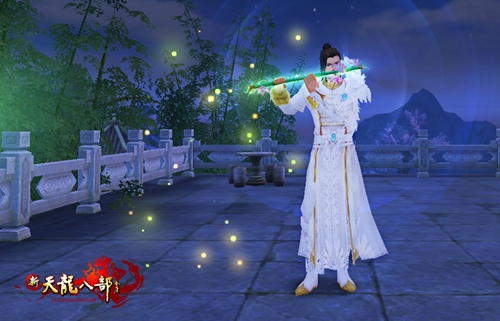 莲池幽梦影,何岁与君同。      手持莲花笛,吹一曲花开花落,云 卷云舒,愿与君歌。一把古琴绿绮,一 支彩笛莲幽,琴笛合鸣,白首不离。七 夕双人幻饰,与你的那个TA一同演绎爱的 旋律。      彩笛莲幽专属幻饰动作 “吹笛”,乐曲《苍山》,可全队赏识 。      浪漫七夕,蓝色妖姬传心意 ,弦语愿逢两心知。《新天龙八部》已 为我们搭起鹊桥,快快给心里的那个TA一 份最有诚意的惊喜,留下一段难忘的回 想。