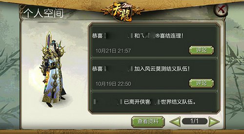婚姻情感状况及结拜状况也会在界面显示。此外,更能够上传自己的照片作为头像,在这个明明能够靠脸吃饭的年代,要什么才调!玩家亦能够检查好友的个人空间。